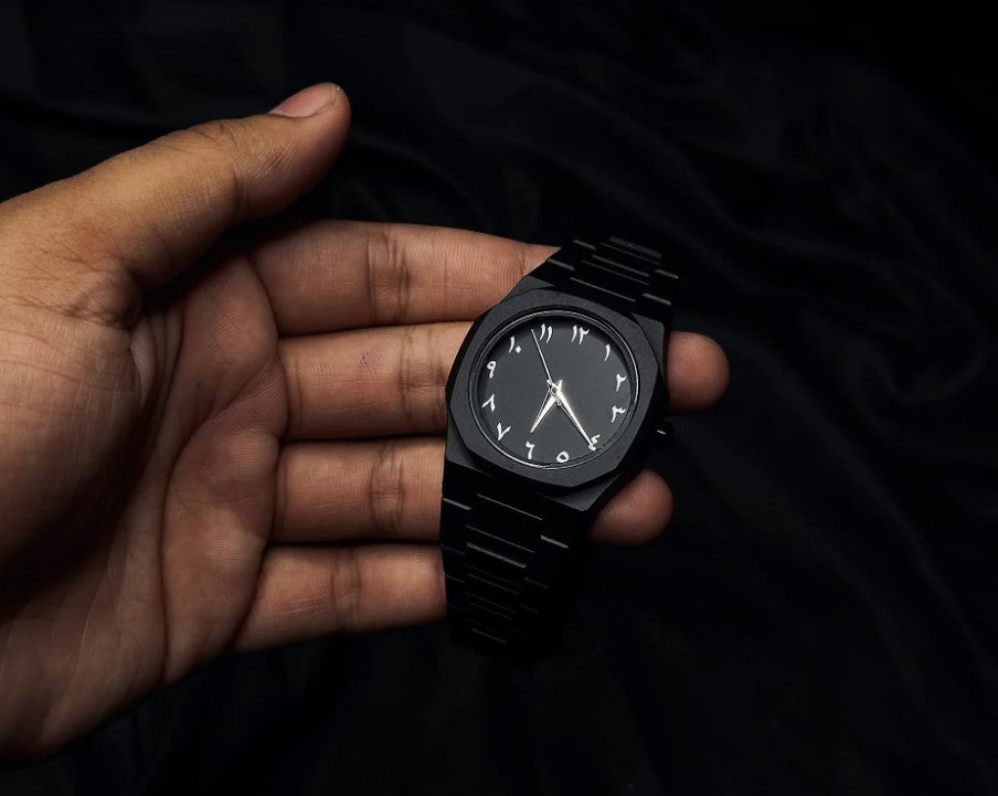 Experience elegance with comfort – the Arabic Aura Watch, crafted with a strong yet lightweight fiber chain strap and a bold Arabic numeral dial.